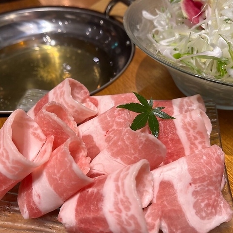 富士山を望む朝霧高原で育てられたヨーグルト状の発酵飼料で飼育され筋繊維が細かく、柔らかな口当たりの“朝霧ヨーグル豚”をしゃぶしゃぶでお楽しみいただく、全7品のコースです。また、デザートは「京都わらび餅あうん」をご用意。