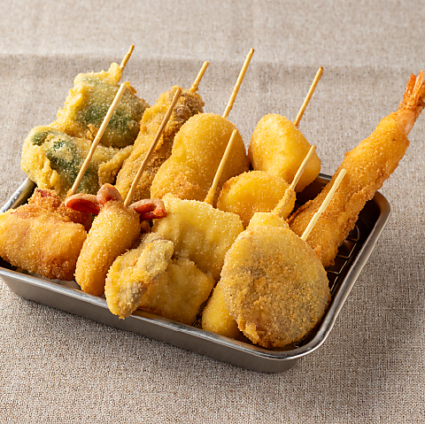 具材いろいろ♪揚げたて串揚げ ~海老、玉ねぎ、なす、ささみチーズ、豚バラ、カマンベールチーズ等~
