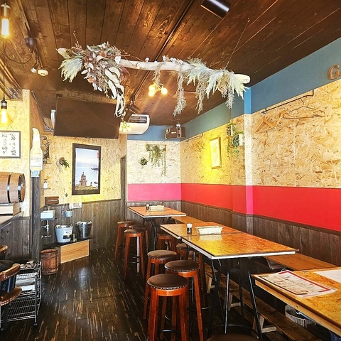 ビールケースを机や椅子に使用しており、とにかく大衆酒場感が楽しめる!普段使いに特におすすめ!