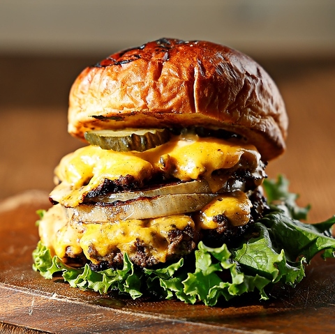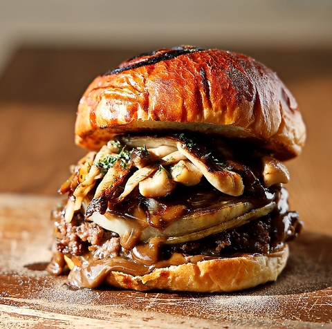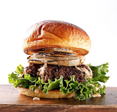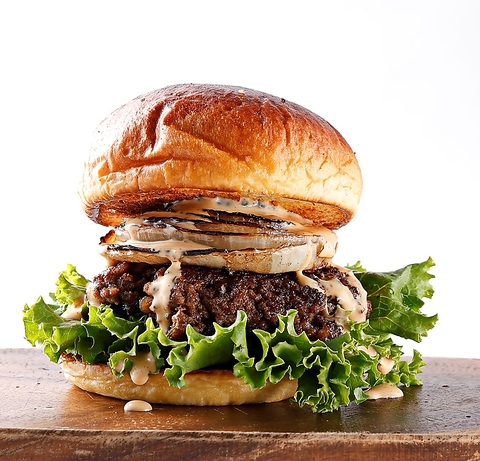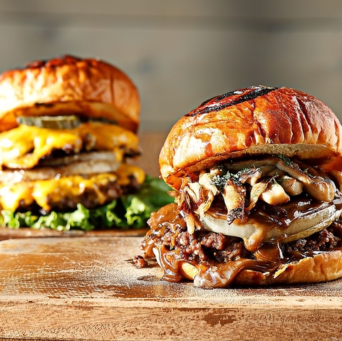 当店1番人気の黒トリュフバーガー。とボリューム満点のスタークWチーズバーガー。