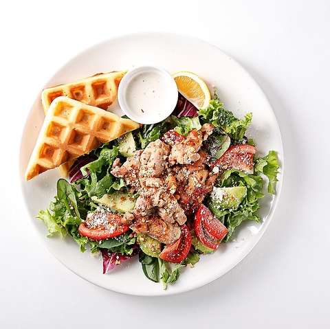 平日ランチ限定!お店でスモークしたチキンにコクのあるカレーソース。サラダとポテト、ドリンクもついたお得なランチ。
