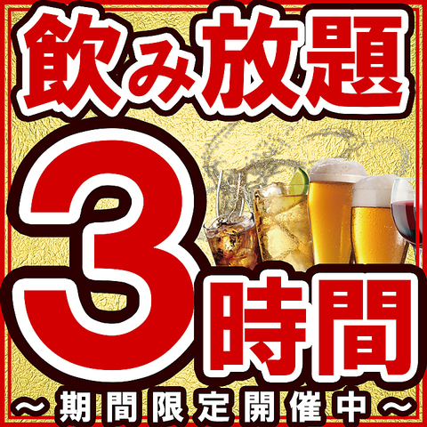 生ビールも飲める単品飲み放題プランは種類豊富で、お食事を選んでご注文したい方や2次会などにもオススメです♪期間限定2時間→3時間に無料延長中!1650円(税込)です! ※金土日祝前は2時間制