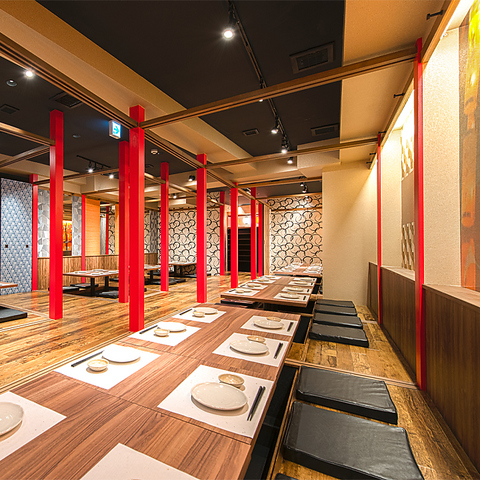 少人数~団体様まで。全席掘りごたつ席で足元ゆったり、広々空間。東岡崎駅より徒歩1分のため宴会や大勢のお客様にご利用頂いております。女子会や合コンや接待に使える個室のお部屋もご用意。忘年会にもおすすめです!人数のご相談等承ります。