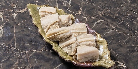 肉厚で脂がのった本マダラを使用しておりプリっとした歯ごたえで噛むほどに旨味が溢れます!適度な辛さでクセになる一品です!※写真は「チャンジャ」です。