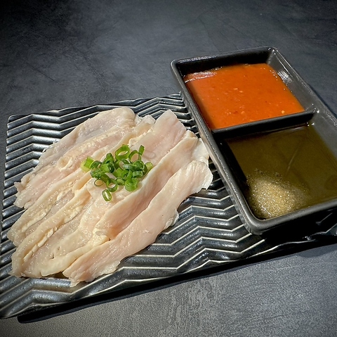 コリコリした食感でクセもないので内蔵が苦手な方でもオススメ!(醤油ベースダレ・ごま油&塩の2種類のタレ付き)