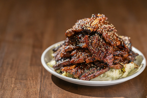 当店自慢の甘辛い特製タレが絡んだ骨付きカルビはごはんにもお酒にも相性バツグン。注文率100%の看板メニューです!!