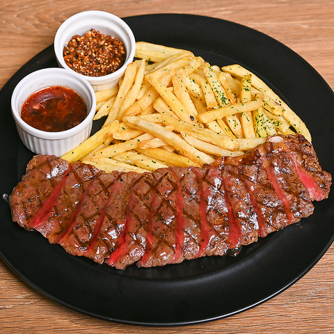 メインは牛ステーキ!豪華オードブルに本日のサラダ、海老とホタテのアヒージョ、ピザ、など贅沢メニューが揃う満足コース。幹事さんも安心な生ビール込みの飲み放題付き!貸切宴会や歓送迎会に人気なコースとなっており、+1500円でアニバーサリープレートの用意も可能です。各種宴会ご相談ください!