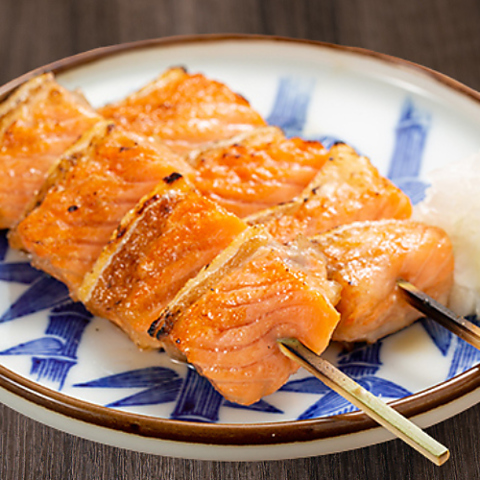 脂のり抜群のサーモンハラスを香ばしく焼き上げた人気の串焼き。皮目はパリッと、身はとろけるようにジューシーで、噛むたびに旨味があふれます。シンプルながら素材の良さが際立ち、日本酒やビールとの相性も抜群。おつまみとしても満足度の高い一串です。