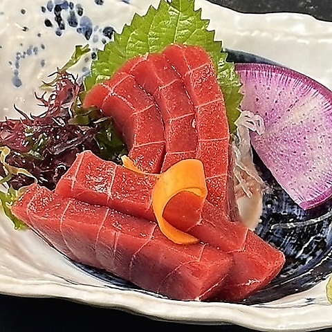 厳選された生本マグロを贅沢に使用したお造りは、冷凍では味わえない豊かな旨味ととろけるような舌触りが魅力。赤身の力強い味わいと中トロの上品な脂のバランスが絶妙で、日本酒や焼酎との相性も抜群。鮮度にこだわった自慢の逸品です。