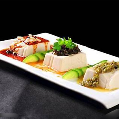 三種それぞれ異なる味わいを楽しめる、当店オリジナルの豆腐三味。なめらかな絹ごし、濃厚なごま豆腐、風味豊かな薬味豆腐など、日替わりで異なる食感と風味を一皿で堪能できます。ヘルシーながらも満足感があり、前菜やおつまみにぴったり。豆腐の奥深さを味わえる贅沢な一品です。