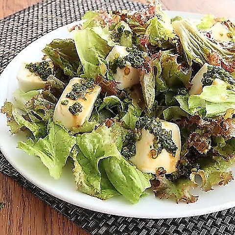 豆腐のやさしい口当たりに、濃厚なごまの香ばしさがアクセント。おつまみにもぴったりな、つい箸がすすむサラダです。