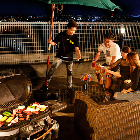 「牛・豚・鶏」に黒毛和牛 有頭エビなど豪華BBQセットは120分飲放題付きです。限定コーススペシャル料理で、立川の夜景をお楽しみ下さい☆