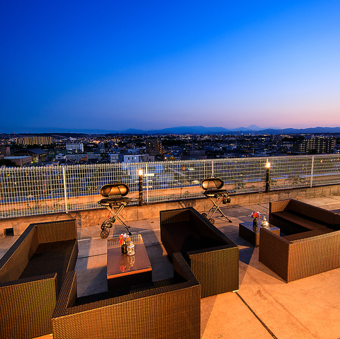 150席の開的な屋上テラスで飲むビールは心も開放的に♪結婚式や二次会会場にもお使いいただけます
