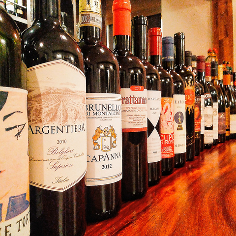<ワインのラインナップが充実>イタリア各地から厳選した約200種類ものボトルワインを取り揃えております。お料理に合うワインを多数!ソムリエがお客様のお好みやお料理に合わせた最適な飲み方をご提案します♪お気軽にお声がけください。