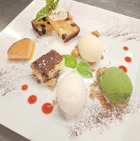 お食事の最後を締めくくる本格的なドルチェも豊富にご用意しております。熟練のシェフが作り上げる自慢のスイーツは、食後の満足感をさらに高めます。特に、色んな種類を少しずつ楽しみたい方には盛り合わせがおすすめ◎最後の一口まで、至福のひとときをご堪能ください。お食事から〆のスイーツまで完璧なイタリアンをお楽しみください。