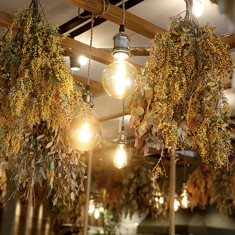 ドライフラワーを飾った、ソファー&チェアのテーブル席