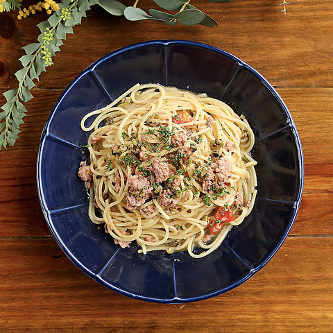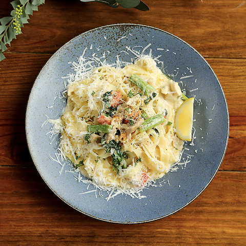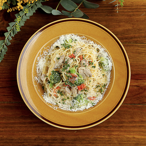 黒ベーコンとフレッシュトマトのジェノベーゼ