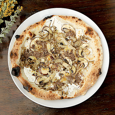 自家製マッシュルームソース,リコッタ,マッシュルーム,ブラックペッパー,グラナパダーノ,EVOオイル mushroom sauce, ricotta, mushroom, brack pepper, grana padano, olive oil