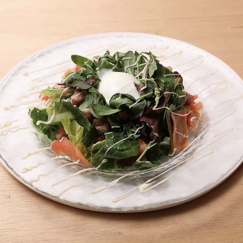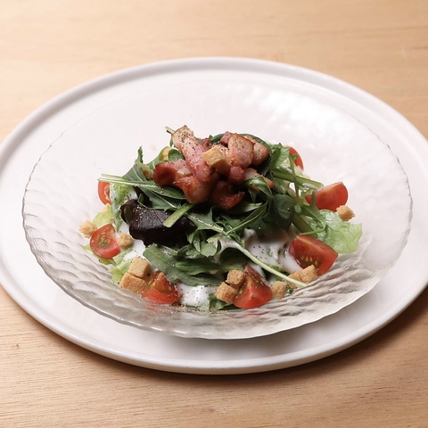 シャキシャキレタスとベーコンにドレッシングと上からかけるチーズの相性抜群