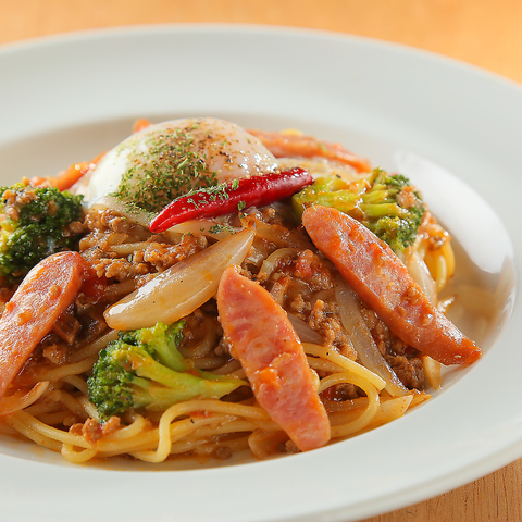ピリ辛ミートソースと半熟卵は、やみつきになる事間違いなし!