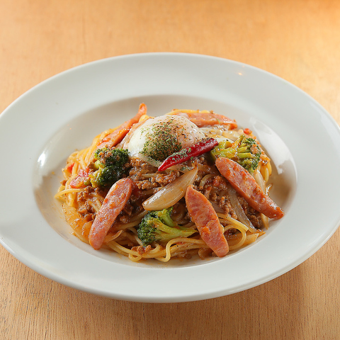 ピリ辛ミートソースと半熟卵は、やみつきになる事間違いなし!