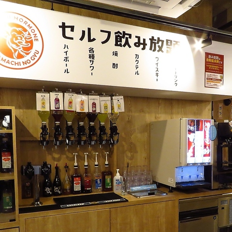 当店名物の驚愕価格!セルフ飲み放題480円!昼飲みのお客様も必見です!お酒と美味しいお肉を一緒にご賞味あれ!