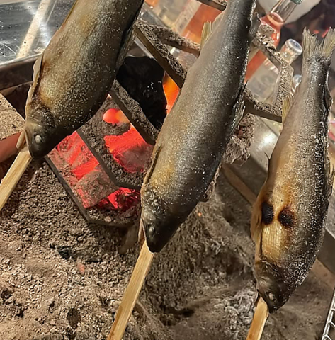新鮮な魚を串刺しにし、囲炉裏でじっくり焼き上げた一品です。外は香ばしく、中はふっくらジューシー。焼きたての旨味を堪能しながら、豊富なお酒と共に楽しめる至福のひととき。ぜひご賞味ください!