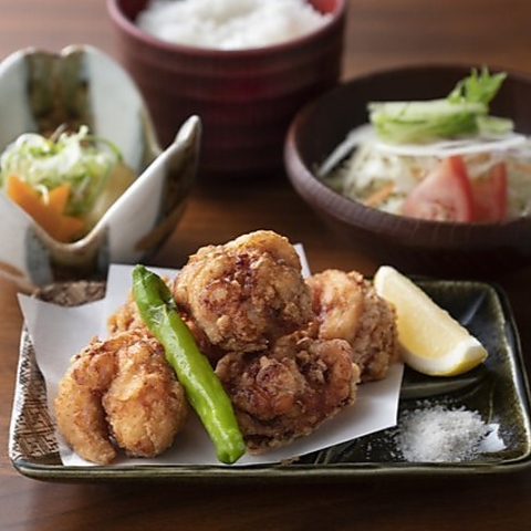 小鉢一品・サラダ・ご飯・味噌汁・漬物付 ※+350円(税込)で味噌汁をミニきしめんに変更できます。