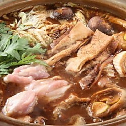 名古屋コーチンをふんだんに使った、心も体も温まる全8品の鍋コースです。名物の手羽先唐揚げや、職人が丁寧に焼き上げた串焼きなど、当店の人気メニューが勢ぞろい。〆は名古屋コーチンと野菜の旨味が凝縮された特製の味噌鍋に、月見とろろうどんで最後まで名古屋の味を存分にご堪能いただけます。