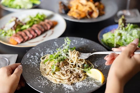 リピータ続出!大人気パスタ!程よくトマトの酸味を残した和牛ボロネーゼ!今しか食べれない、旬の食材を使った″期間限定パスタ″などもご準備しています。