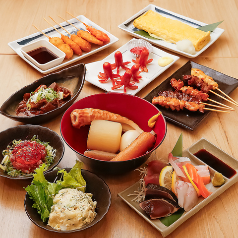 串物、揚げ物、おでんにサラダ。大衆居酒屋といえばこれ!という品々を数多く取り揃えています!お手頃価格でご提供しておりますので、是非いろいろなメニューをご賞味ください☆※写真はイメージです。