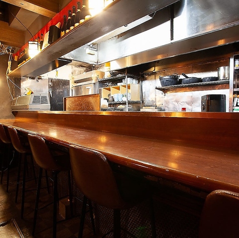 【目の前で調理が見えるカウンター席】お一人様のご利用も大歓迎!横並びで座れるカウンター席はデートや、2人で語らう夜にもおすすめです。こだわりのお酒もゆっくりとご堪能いただけます◎
