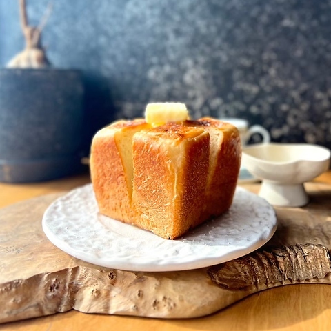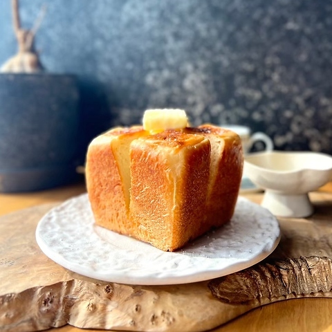 国産小麦はるゆたかでつくる生食パン。食べきりサイズのミニ一斤食パンに焼きあげました。下北沢が誇る蜂蜜【シモキタハニー】。よつ葉発酵バターをたっぷりとトッピング。