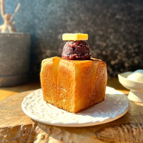 国産小麦はるゆたかでつくる生食パン。食べきりサイズのミニ一斤食パンに焼きあげました。北海道産特別栽培小豆の粒あん。よつ葉発酵バターをたっぷりとトッピング。