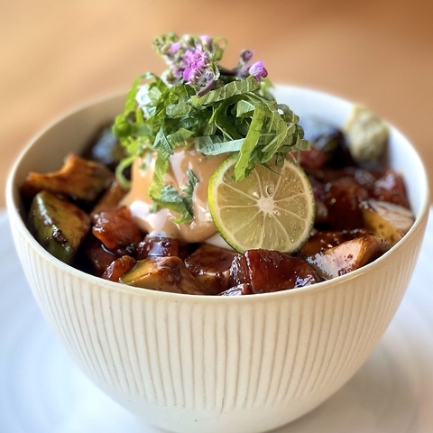 まだまだ希少な静岡サーモンを贅沢に。定番のアボカドと組み合わせて体に嬉しい相乗効果。特製の醤油だれを絡めて提供いたします。