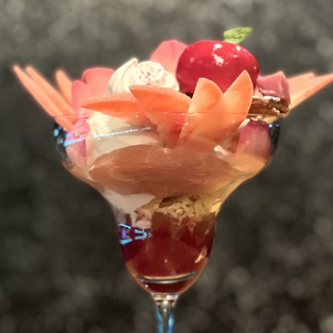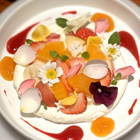 たっぷりのマスカルポーネクレームシャンティ。たっぷりのフレッシュフルーツの魅力をシンプルに堪能できる一皿に仕上げます。