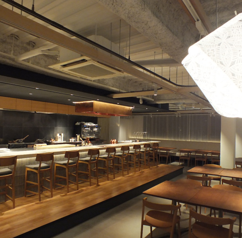 調理風景を眺めながらお食事をお楽しみ頂けるカウンター席。自慢の鉄板から、こだわりのお肉料理の香りも漂います。