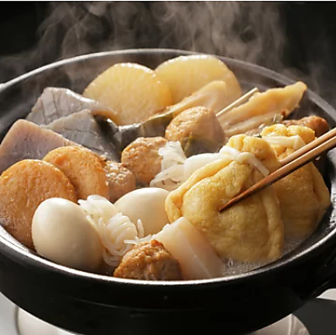 じっくり煮込んだおでんは、ひとつずつでも、いろいろ楽しむ盛り合わせでも嬉しい一品です♪具材ひとつひとつにしみ込んだ出汁の旨味がたまりません!寒い季節に温まりませんか?