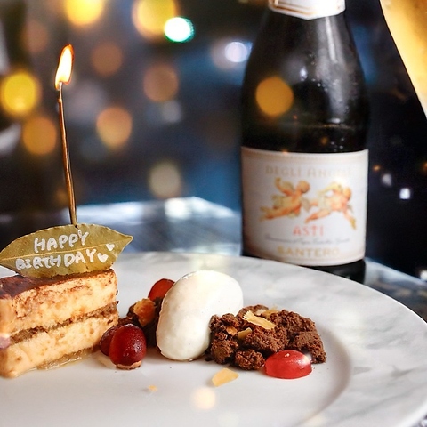 誕生日や記念日のサプライズにぴったりのお洒落なプレートをご用意!特別な日も華やかに!当日予約も可能!(梅田/イタリアン/ダイニングバー/デート/夜景/記念日/誕生日/サプライズ/東通り/中崎町/大阪駅/梅田駅/バースデープレート/梅田駅ディナー)