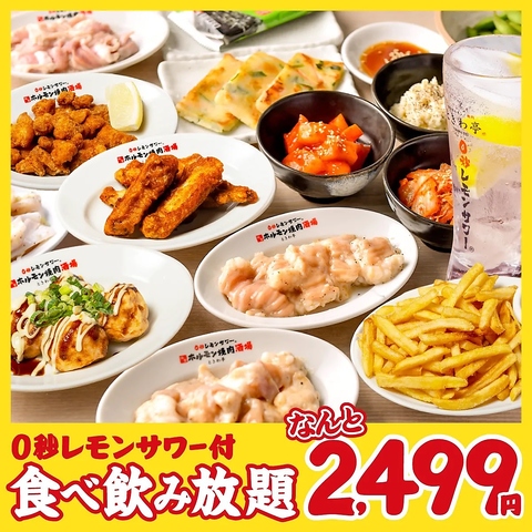 幹事様必見◎酒・料理が足りないなどの心配無用!名物「仙台 塩ホルモン」をはじめ、焼肉、サイドメニュー、さらに「0秒レモンサワー」を思う存分楽しめる【食べ放題&飲み放題コース】が大人気♪驚愕の”2749円”からと鬼コスパを実現!
