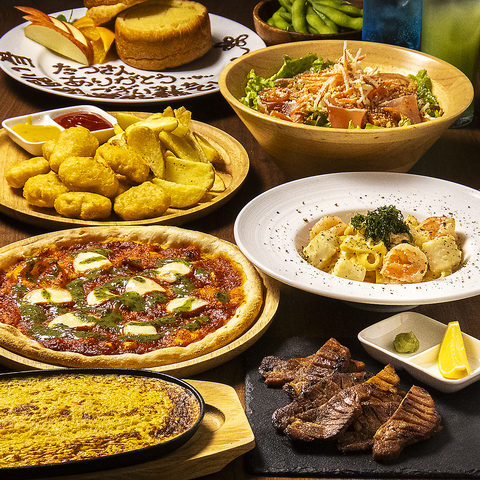 彩り豊かな具材が美味しい人気のコブサラダを含むサラダ各種や、女性に大人気のアヒージョ、店内仕込みの手作り生地の絶品ピザなど、お酒のおつまみに最適なアラカルト料理、おつまみなど豊富なメニューをご用意しております♪お好きなドリンクと合わせてお楽しみください。
