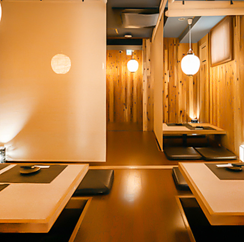 シンプルでありながらもお洒落な個室はシーンを選ばずにご利用いただけます★接待、デート、女子会、合コンなどから大規模な宴会までお任せください!個室で周りを気にせずにお楽しみいただけます♪ご予約はお早めにお願いいたします!