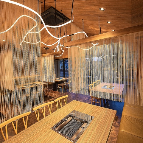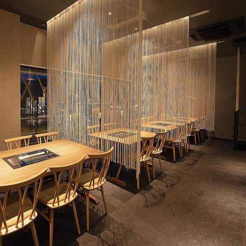 当店は、高級感漂う洗練された内装が魅力です。広々としたテーブル席を完備しており、ゆったりとした時間をお楽しみいただけます。さらに、新型ロースターを導入しているため、髪や服に匂いが移る心配もなく、安心してお食事を楽しめます。快適な空間で、贅沢な料理とこだわりのお酒を、心ゆくまでご堪能ください。