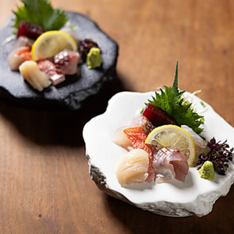 取り分け不要のお一人様ずつの盛り付けでご提供しております。6~7種類の鮮魚を盛りつけます。