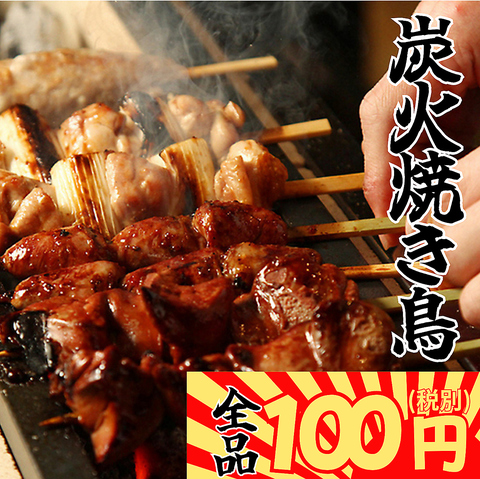 当店料理長が一本一本焼き上げたジューシーな焼き鳥がなんと、全品100円!!