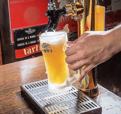 どこか懐かしい、レトロな雰囲気が心地よい店内。カウンターにゆっくり腰かけてお酒を傾けるのも楽しみのひとつ♪カウンター席の卓上にもビールサーバーを備えておりますので、配膳を待たずに次の一杯を楽しめるのも嬉しい◎また厨房の調理風景を楽しみながらのお食事ができるのもカウンター席の魅力!
