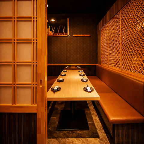 【大人数プライベート個室】10~30名様でもゆったりとお座りいただけるテーブル個室。大切なお客様を迎えての接待やビジネス仲間との会食、お仕事仲間との歓送迎会はもちろん、ご家族・親族でのお食事などにもご利用ください。ご宴会は飲み放題付が断然おトク。ゆったり大切な時間を価値あるものを♪