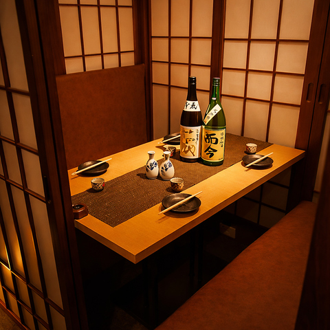 ★2名様個室★デート、女子会などに最適なお席です! 落ち着きのある掘りごたつ個室で楽々お寛ぎいただけます!九州の和食を味わうには落ち着いた環境も大切◎オシャレな広々個室で大変人気なため、お早めにご予約ください!(有楽町/和食/地鶏/地魚/居酒屋/個室/デート/女子会/誕生日/記念日/宴会)