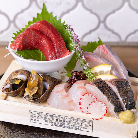 市場直送の新鮮な旬の海鮮をご用意しております!お造り盛り合わせはもちろん、勘八の胡麻和えや、鮮魚のなめろうなど、お酒のアテにもピッタリなものばかり!その時期によってメニューは変わりますので、その時その時の旬の味をお愉しみください☆