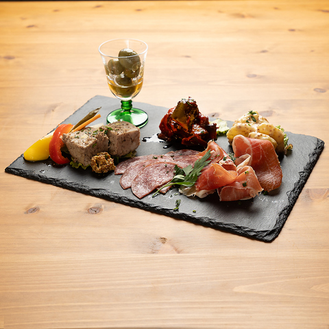 お洒落な前菜盛り合わせは季節の食材をつかったおすすめの一品。ワインやビールとの相性抜群の料理を多数ご用意!お一人様でも大人数でもお楽しみいただけます。女子会、デート、誕生日、記念日など様々なシーンでご利用いただけます